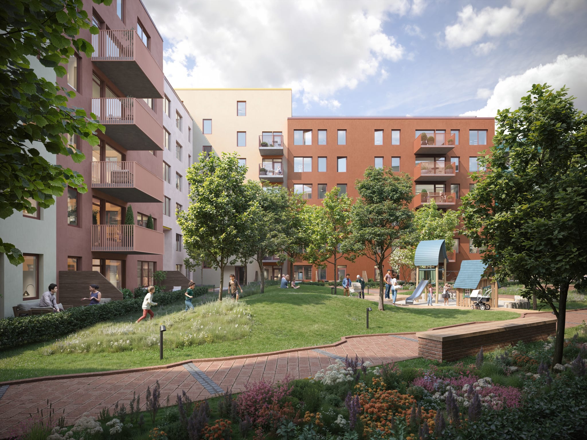 Her blir det lett å få hverdagen til å flyte. For Linderudløkka er mer enn bare et nytt nabolag. I tillegg til moderne leiligheter, vil nabolaget inneholde et eget torg, en splitter ny barnehage, lekeplasser, og kontor- og næringsbygg med dagligvarebutikker, kafeer, restauranter og mer.