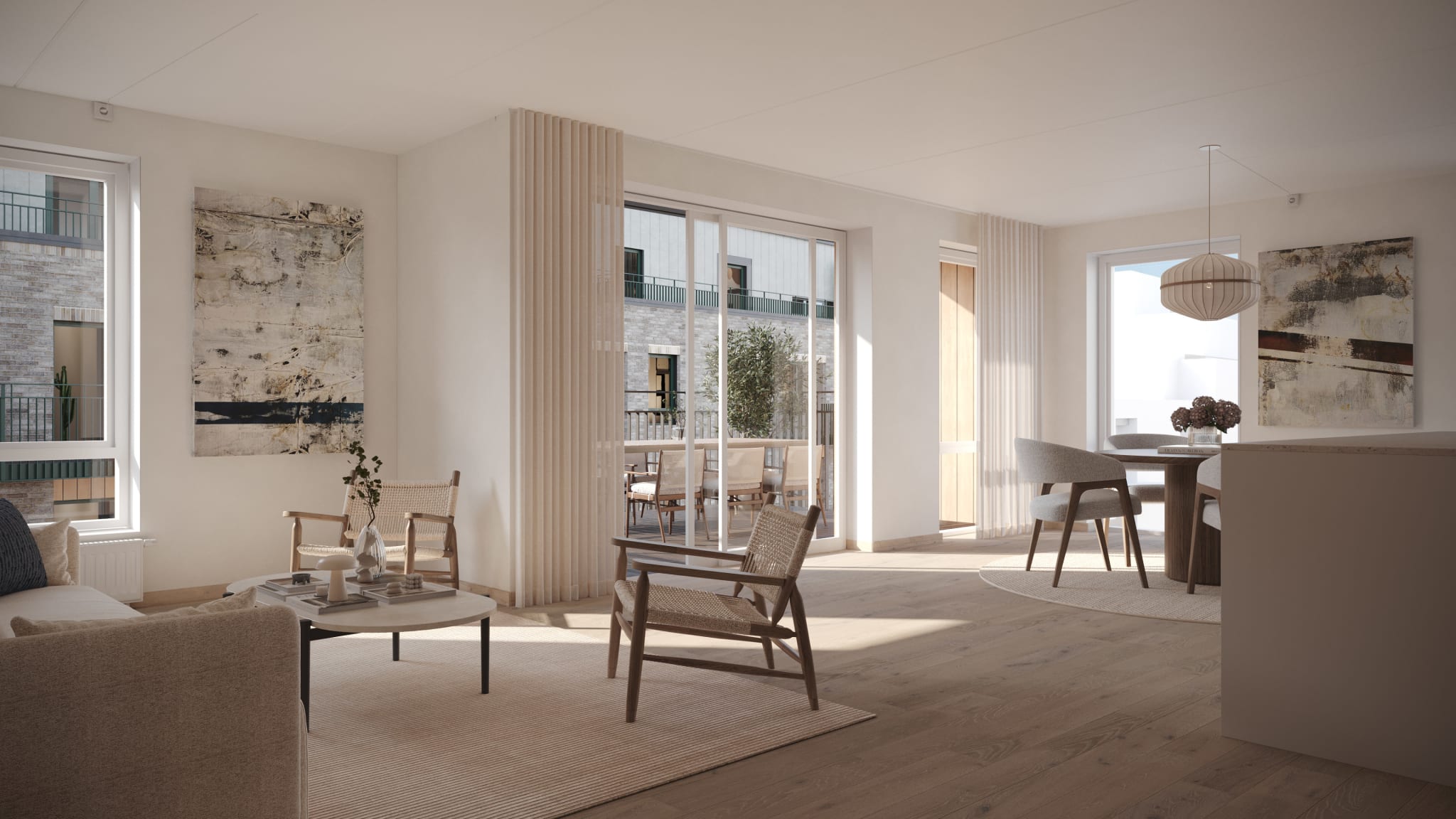 I tillegg til å være i moderne standard med funksjonelle planløsninger, vil de aller fleste leilighetene få egen uteplass. Alle boliger vil også få tilgang til felles takterrasser og grønne uteområder mellom byggene.